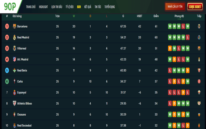 La Liga là không gian phô diễn đẳng cấp của những tên tuổi lớn như Real Madrid, Barcelona và Atletico Madrid. Tại nền tảng, BXH La Liga được cập nhật liên tục, bảo đảm độ chính xác ở từng chỉ số. Nhờ đó, người theo dõi có thể phân tích sâu hơn về khoảng cách điểm số, hiệu suất ghi bàn và sự ổn định phong độ qua từng chặng đường của mùa giải.